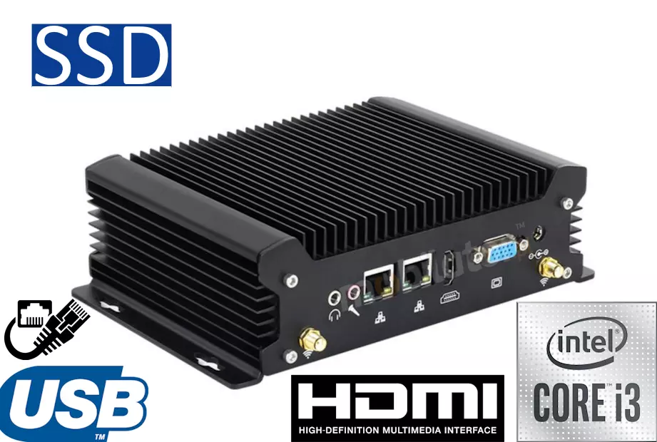 Small dimensions industrial computers excel in environments where dust, dirt and moisture predominate. They are ideal for applications requiring quiet operation. Small and reliable MiniPC use heat-pipe technology and aluminum fins for passive cooling. The robust mini Industrial Computer MiniPC yBOX-X58 is a device designed for all industrial and non-continuous applications requiring continuous operation - 24 hours, 7 days a week.