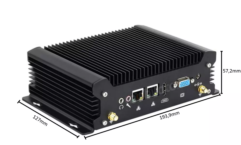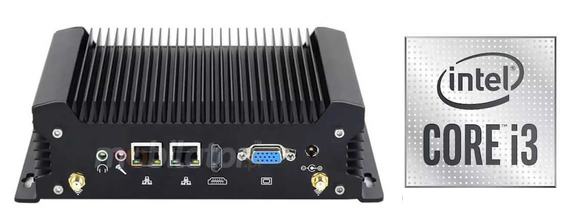 The industrial Mini PC uses a proven cooling system, based only on solid elements, mainly heat sinks. The system uses the phenomenon of metals passing thermal energy into the environment - there are no additional moving elements in the form of eg fans. This solution ensures noiseless operation, lower failure rate and greater protection against dust and other dirt while reducing the amount of energy consumed.