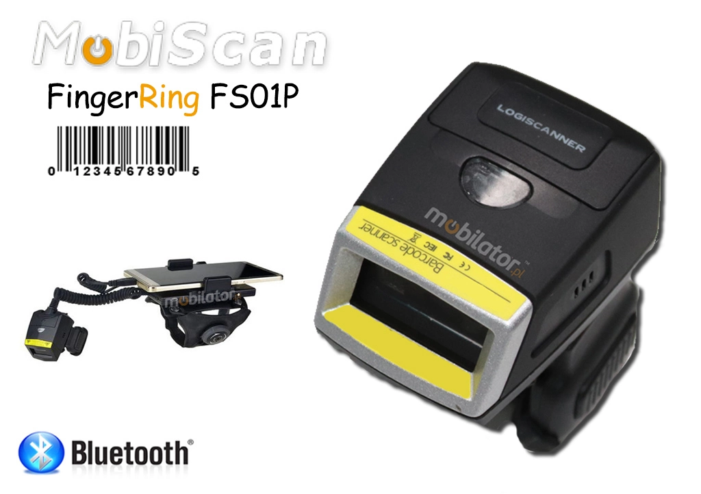 OpisNietypowy, nowoczesny, bezprzewodowy (Bluetooth) mini skaner kodów kreskowych MobiScan FingerRing FS01P został zaprojektowany z myślą o użytkownikach, dla których konieczne jest skrupulatne katalogowanie wszystkich dostępnych informacji logistycznych w postaci elektronicznych baz danych, arkuszy kalkulacyjnych, zestawień, formularzy, itp.