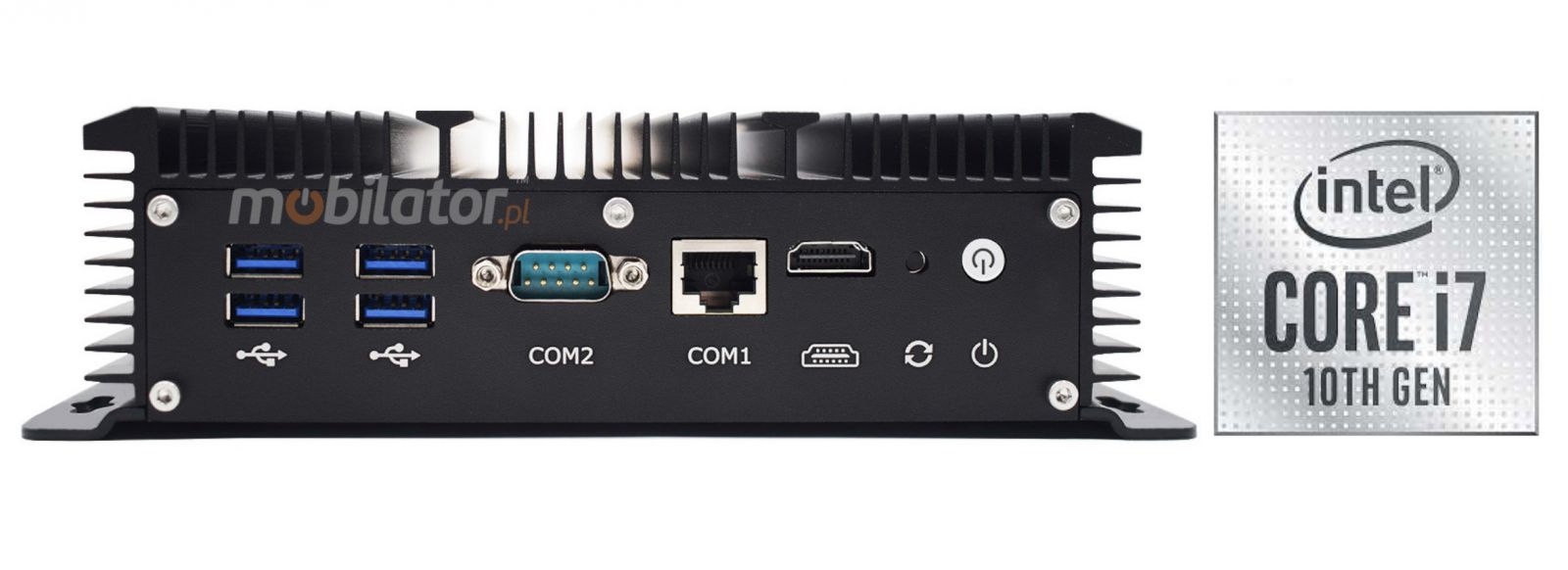 W przemysłowym mini komputerze HyBOX 1009 zastosowano wydajny i energooszczędny procesor Intel Core i7-10610U. W jego wnętrzu znajdują się cztery współdziałające rdzenie umożliwiające bardziej efektywne przetwarzanie wielu zadań jednocześnie. Współużytkowana pamięć cache, w której wykorzystano wielopoziomową hierarchię, jest dynamicznie przydzielana dla każdego rdzenia procesora w zależności od obciążenia. Doprowadza to do zmniejszenia średniego czasu dostępu do pamięci głównej.