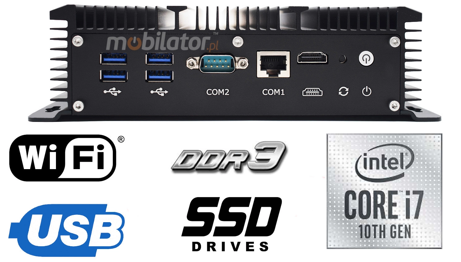 W przemysłowym mini komputerze HyBOX 1009 zastosowano wydajny i energooszczędny procesor Intel Core i7-10610U. W jego wnętrzu znajdują się cztery współdziałające rdzenie umożliwiające bardziej efektywne przetwarzanie wielu zadań jednocześnie. Współużytkowana pamięć cache, w której wykorzystano wielopoziomową hierarchię, jest dynamicznie przydzielana dla każdego rdzenia procesora w zależności od obciążenia. Doprowadza to do zmniejszenia średniego czasu dostępu do pamięci głównej.