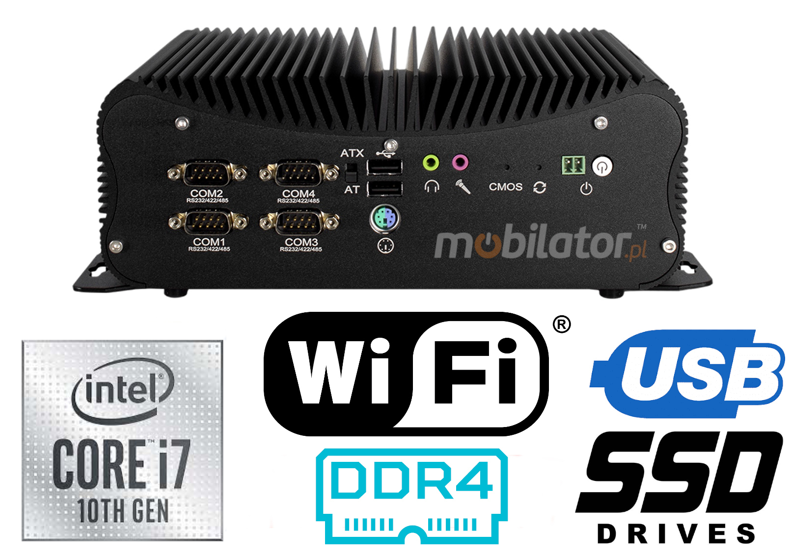 HyBOX 1012B-D4 i7-10610U (DC 9-36V) v.6 - (3 LATA GWARANCJI) wzmocniony, odporny na kurz komputer przemysłowy Intel i7 10-tej generacji, 64GB RAM, dyski: 1TB SSD i 4TB HDD, wejścia: 1x GPIO, 4x USB3.0, 2x USB2.0, 2xRJ45 Lan, 1x HDMI, 6x DB9 COM, 1x RJ45