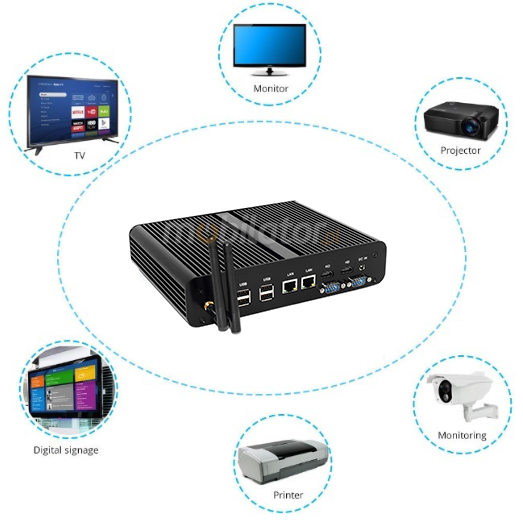 Dzięki niewielkim wymiarom MiniPC ma wszechstronne zastosowanie zarówno w domu, w biurze jak i w przemyśle na przykład na hali produkcyjnej. Zmieści się dosłownie wszędzie, a dzięki mocowaniu VESA można go zamontować z tyłu monitora w celu optymalizacji stanowiska pracy.