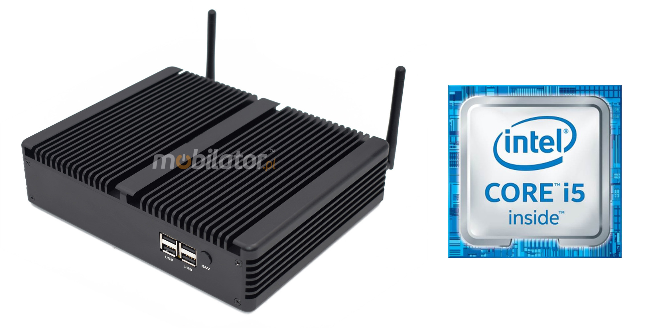 Niewielkich wymiarów komputery przemysłowe przodują w środowiskach, w których dominują kurz, brud i wilgoć. Są idealne do zastosowań wymagających cichej pracy. Małe i niezawodne MiniPC korzystają z technologii heat-pipe i lamel z aluminium dla pasywnego chłodzenia. Wytrzymały mini Komputer Przemysłowy HyBOX TH5 to urządzenie przeznaczone do wszelkich zastosowań przemysłowych i nie tylko, wymagających ciągłej pracy - 24 godziny, 7 dni w tygodniu.