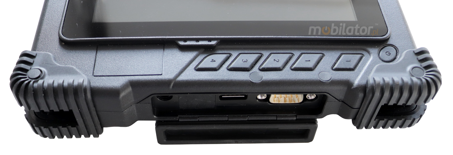 Czytnik kodów kreskowych 1D lub 1D/2D oraz czytnik kart MSR został umiejscowiony w górnej części tabletu przemysłoweg po to by zapewnić wygodę w codziennym użytkowaniu w dowolnym położeniu. Dolna część została zarezerwowana dla złącza do stacji dokującej za pomocą, której tablet może zyskać na swojej funkcjonalności.