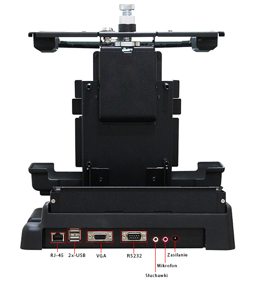 4xUSB, RS232 COM, LAN, VGA, wyjście słuchawkowe, wejście mikrofonowe