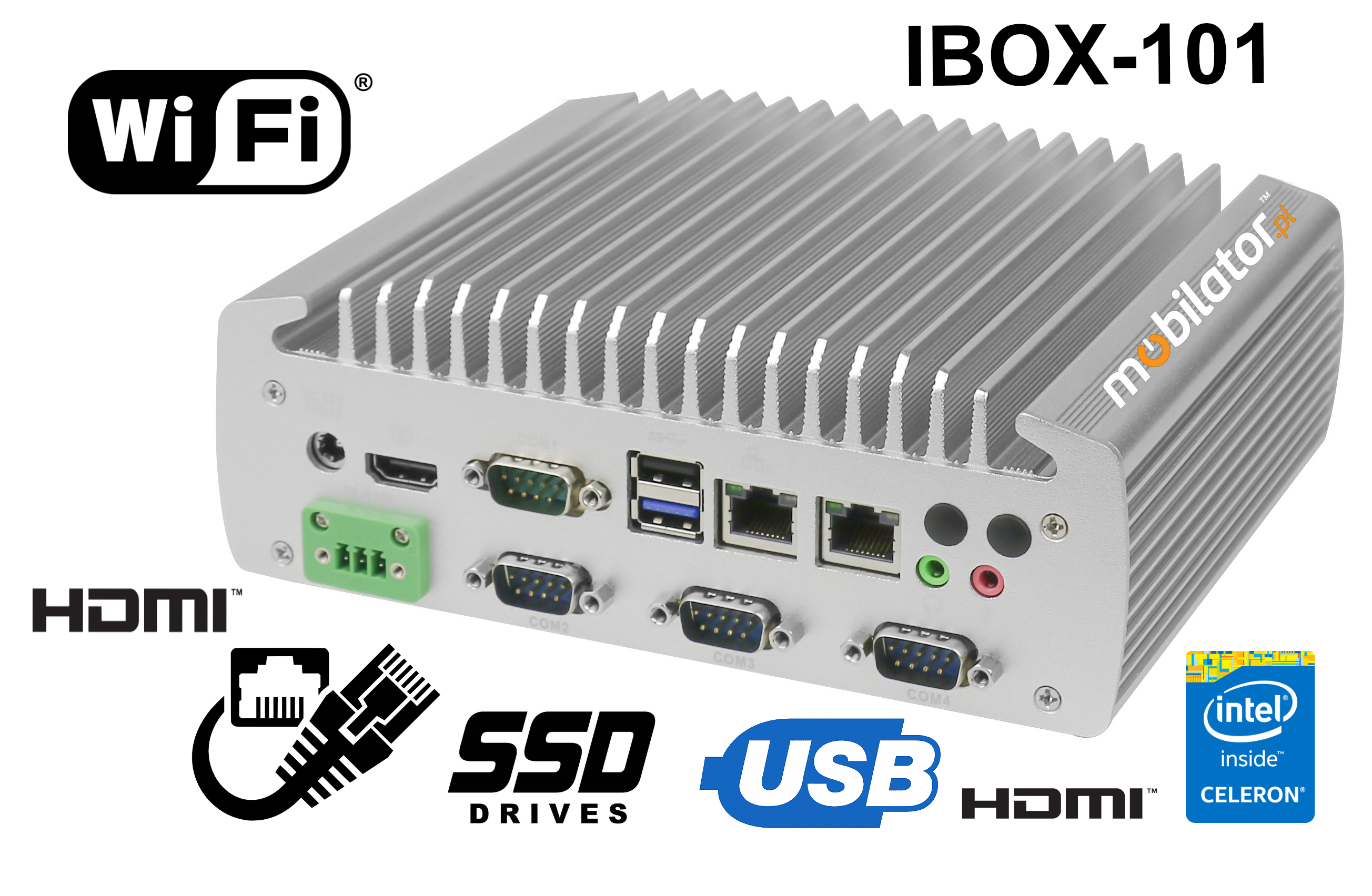 Niewielkich wymiarów komputery przemysłowe przodują w środowiskach, w których dominują kurz, brud i wilgoć. Są idealne do zastosowań wymagających cichej pracy. Małe i niezawodne MiniPC korzystają z technologii heat-pipe i lamel z aluminium dla pasywnego chłodzenia. Wytrzymały mini Komputer Przemysłowy IBOX 101 to urządzenie przeznaczone do wszelkich zastosowań przemysłowych i nie tylko, wymagających ciągłej pracy - 24 godziny, 7 dni w tygodniu.