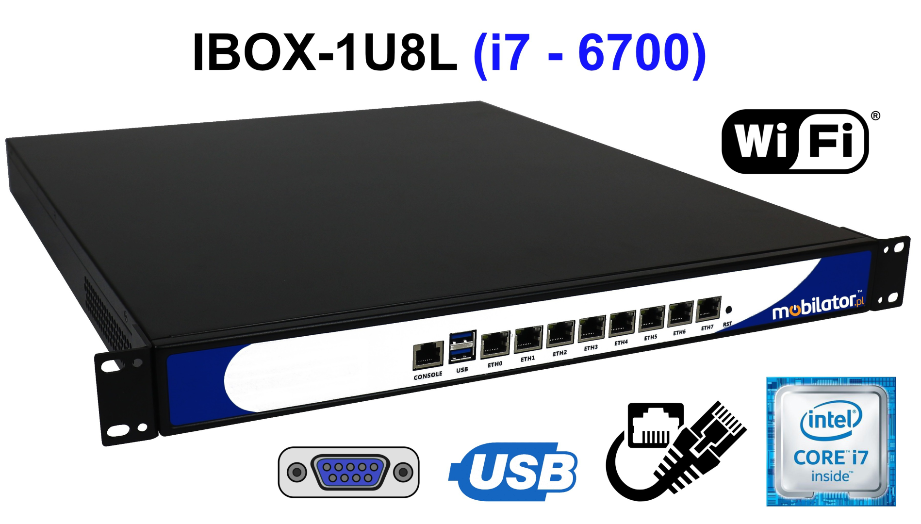 MiniPC IBOX-1U8L posiada 8 wbudowanych kart sieciowych Intel, które mogą pracować w szybkiej sieci Gigabit Ethernet.