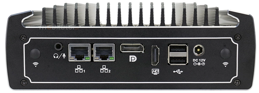 W przemysłowym Mini PC zastosowano sprawdzony system chłodzenia, oparty wyłącznie na elementach stałych, głównie radiatorach. W systemie tym wykorzystuje się zjawisko oddawania przez metale energii cieplnej do otoczenia – nie występują tu dodatkowe elementy ruchome w postaci np. wentylatorów. Takie rozwiązanie zapewnia bezgłośną pracę, mniejszą awaryjność oraz większą ochronę przed kurzem i innymi zabrudzeniami przy jednoczesnym zmniejszeniu ilości pobieranej energii.