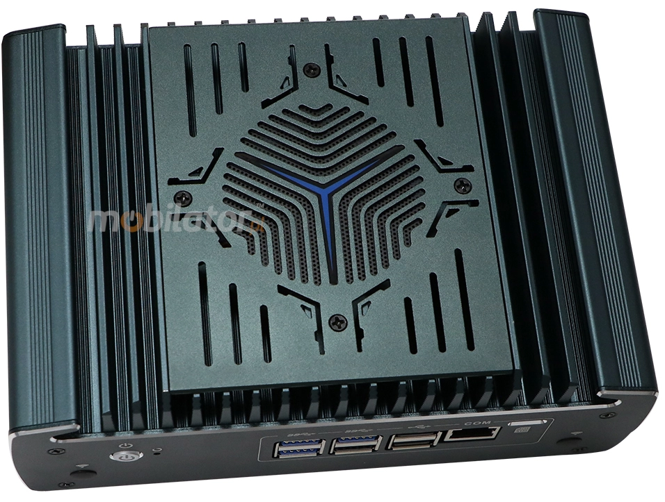 W przemysłowym Mini PC dostępna jest również opcja chłodzenia aktywnego (fan), wykorzystującego wentylator zapewniający efektywne odprowadzanie ciepła z podzespołów urządzenia. System ten gwarantuje utrzymanie optymalnej temperatury pracy nawet przy dużym obciążeniu, co pozwala na stabilne działanie w wymagających warunkach. Chłodzenie aktywne można wybrać jako opcję przy zamówieniu urządzenia, dostosowując konfigurację do indywidualnych potrzeb użytkownika. Wersja z chłodzeniem aktywnym posiada lekko zmodyfikowaną obudowę, przystosowaną do montażu wentylatora i zapewniającą optymalny przepływ powietrza.