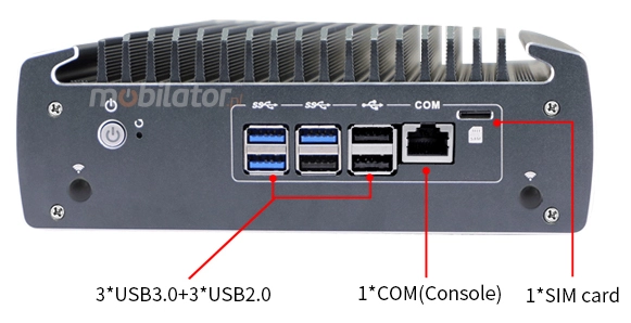 W przemysłowym Mini PC dostępna jest również opcja chłodzenia aktywnego (fan), wykorzystującego wentylator zapewniający efektywne odprowadzanie ciepła z podzespołów urządzenia. Wentylator kieruje ciepło na zewnątrz, zapewniając wydajne chłodzenie. Żebra chłodzące wspomagają ten proces, efektywnie rozpraszając nagromadzone ciepło. System ten gwarantuje utrzymanie optymalnej temperatury pracy nawet przy dużym obciążeniu, co pozwala na stabilne działanie w wymagających warunkach. Chłodzenie aktywne można wybrać jako opcję przy zamówieniu urządzenia, dostosowując konfigurację do indywidualnych potrzeb użytkownika. Wersja z chłodzeniem aktywnym posiada lekko zmodyfikowaną obudowę, przystosowaną do montażu wentylatora i zapewniającą optymalny przepływ powietrza.