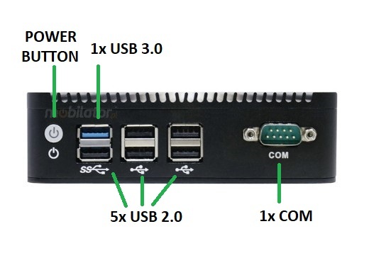 1xUSB 3.0 | 5xUSB 2.0 | 1xCOM | Power button |