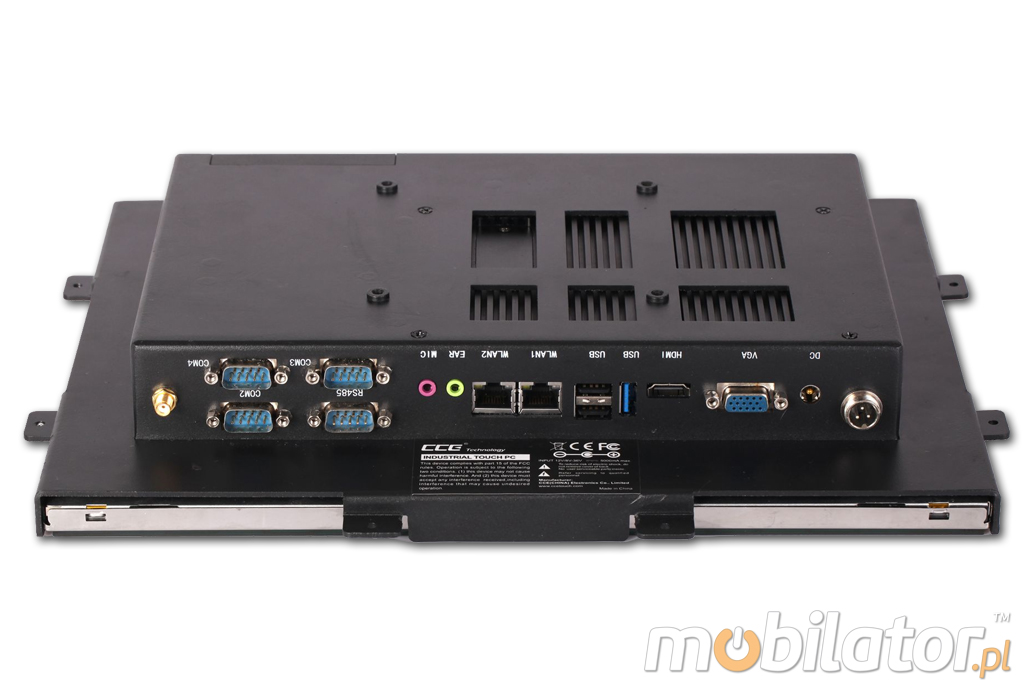 Zintegrowana karta sieciowa Intel RTL8111G 10/100/1000Mbps LAN 2xRJ-45, WIFI umożliwia podłączenie urządzenia do sieci. Komputer wyposażony jest w: dwa złącza LAN, w trzy porty COM(RS232), jeden port COM(RS485) jedno wyjście VGA, jedno wyjście HDMI, dwa porty USB 2.0, jeden port USB 3.0, jedno wejście Audio, jedno wejście mikrofonowe MIC oraz w złącze zasilania DC-in.