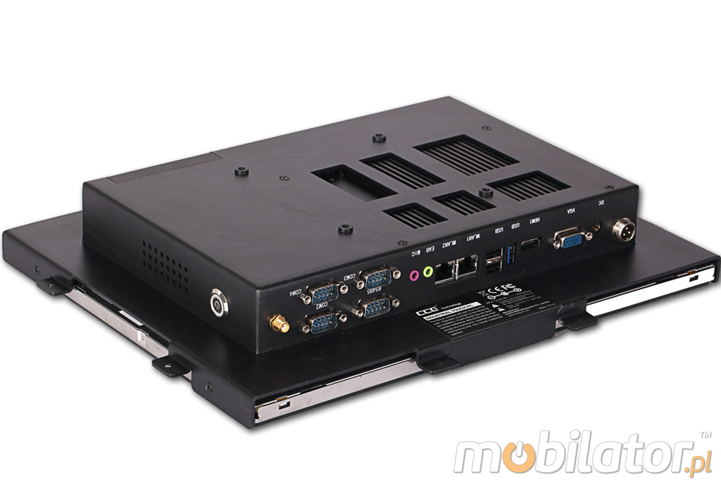 Zintegrowana karta sieciowa Intel RTL8111G 10/100/1000Mbps LAN 2xRJ-45, WIFI umożliwia podłączenie urządzenia do sieci. Komputer wyposażony jest w: dwa złącza LAN, w trzy porty COM(RS232), jeden port COM(RS485) jedno wyjście VGA, jedno wyjście HDMI, dwa porty USB 2.0, jeden port USB 3.0, jedno wejście Audio, jedno wejście mikrofonowe MIC oraz w złącze zasilania DC-in.