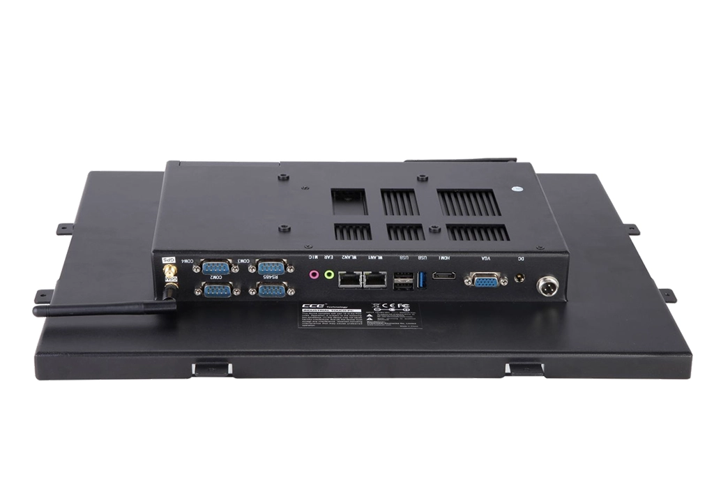 Złącza: Zintegrowana karta sieciowa Intel RTL8111G 10/100/1000Mbps LAN 2xRJ-45, WIFI umożliwia podłączenie urządzenia do sieci. Komputer wyposażony jest w: dwa złącza LAN, w trzy porty COM(RS232), jeden port COM(RS485) jedno wyjście VGA, jedno wyjście HDMI, dwa porty USB 2.0, jeden port USB 3.0, jedno wejście Audio, jedno wejście mikrofonowe MIC oraz w złącze zasilania DC-in.
