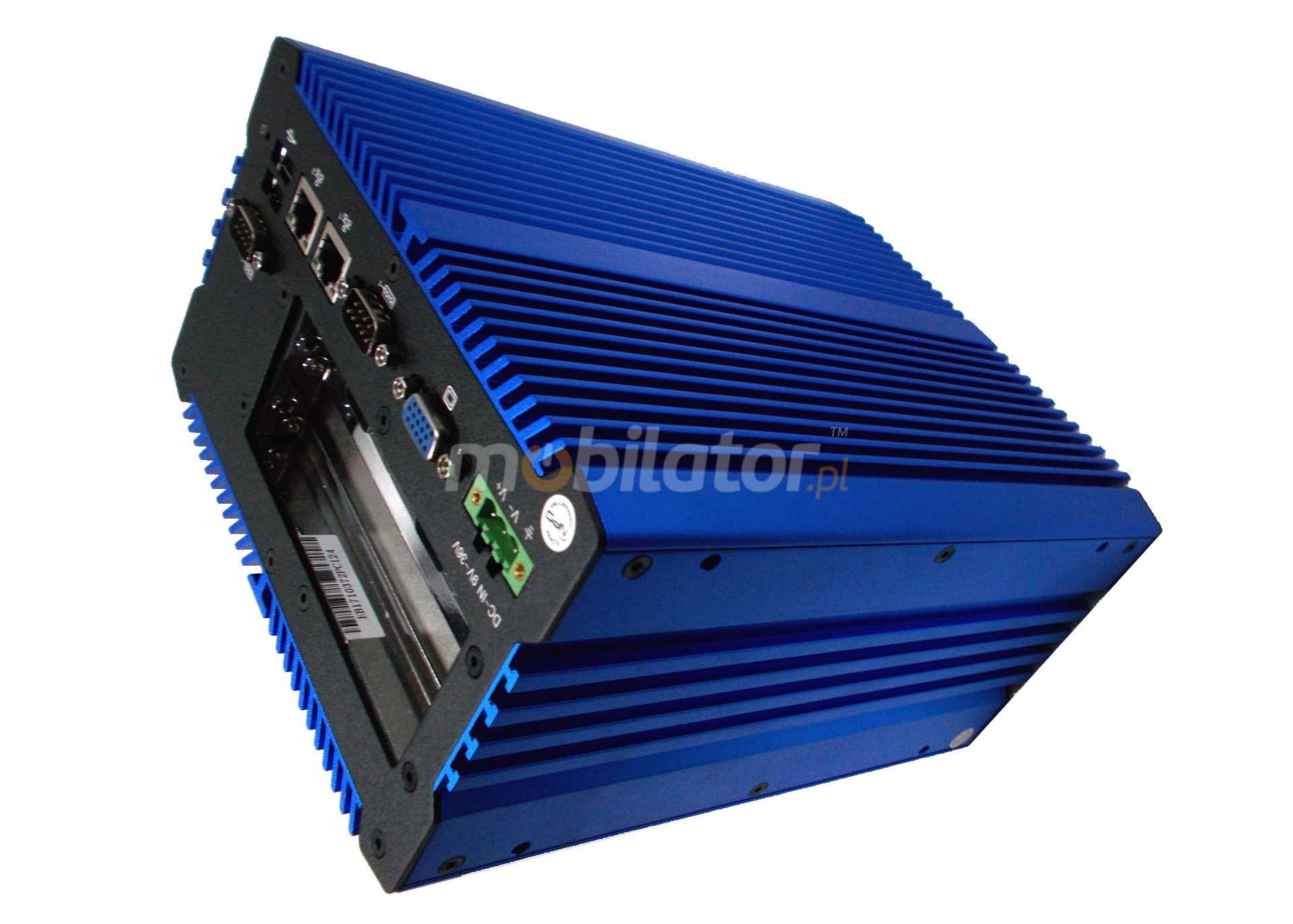 Zintegrowana karta sieciowa - Intel RTL8111E 1000M Lan (opcjonalnie moduł WiFi) umożliwiaja podłączenie urządzenia do sieci. Komputer wyposażony jest w: dwa złącza LAN, dwa porty COM(RS232) - opjonalnie jeden port COM może zostać wymieniony na COM(RS422/485), dwa porty PCI, jedno wyjście VGA, cztery porty USB 2.0, jedno wejście Audio, jedno wejście mikrofonowe oraz złącza/konektory wbudowane na płycie głównej: dwa porty USB 2.0, dwa wyjścia PowerOUT, jedno wyjście Audio, jedno złącze CPUFAN, jedno złącze LVDS.