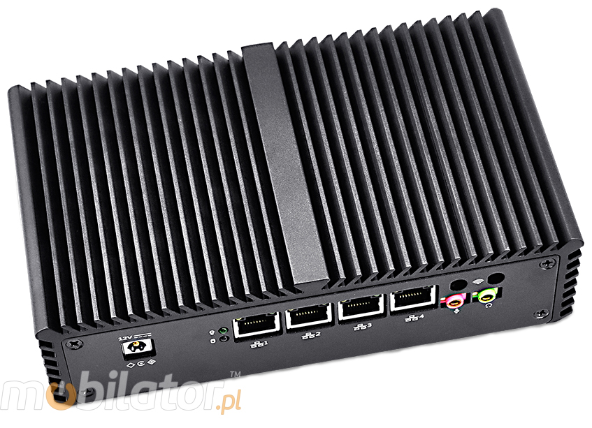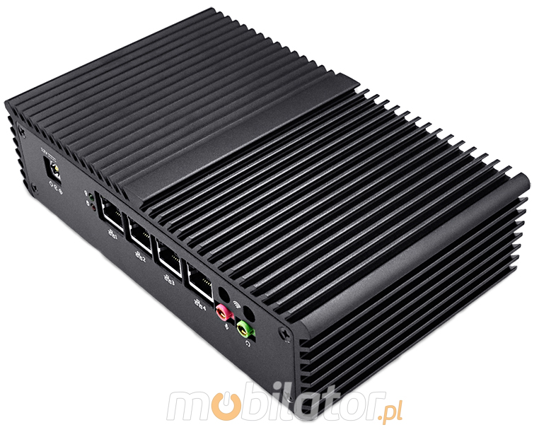 Zintegrowane karty sieciowe Intel I211-AT- 10/100/1000 Controller oraz moduł WiFi umożliwiają podłączenie urządzenia do sieci. Komputer wyposażony jest w: cztery złącza LAN, dwa porty USB 3.0, dwa porty USB 2.0, jedno wyjście HDMI, jeden port COM(RS232), jedno wyjście audio, jedno wejście mikrofonowe oraz złącza wbudowane na płycie głównej: jeden port SATA, jeden port MINI-PCIE.