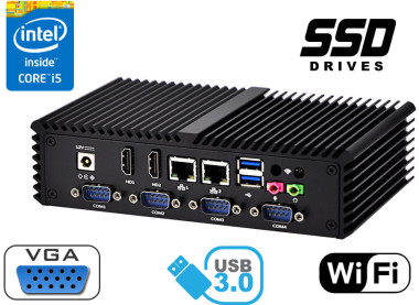 Dwie zintegrowane karty sieciowe Intel I211-AT- 10/100/1000 Controller umo¿liwiaja pod³±czenie urz±dzenia do sieci. Komputer wyposa¿ony jest w: dwa z³±cza LAN, cztery port USB 3.0, dwa porty USB 2.0, dwa wyj¶cia HDMI, piêæ portów COM (RS232), jeden port VGA, jedno wyj¶cie audio, jedno wej¶cie mikrofonowe.