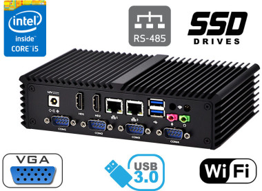 Dwie zintegrowane karty sieciowe Intel I211-AT- 10/100/1000 Controller umo¿liwiaja pod³±czenie urz±dzenia do sieci. Komputer wyposa¿ony jest w: dwa z³±cza LAN, cztery port USB 3.0, dwa porty USB 2.0, dwa wyj¶cia HDMI, cztery porty COM (RS232), jeden port COM (RS485), jeden port VGA, jedno wyj¶cie audio, jedno wej¶cie mikrofonowe.