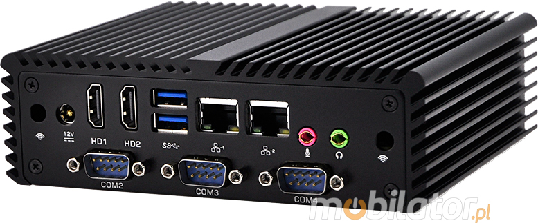 Zintegrowana karta sieciowa Realtek RTL8111E 10/100/1000 Controller oraz moduł WiFi umożliwiaja podłączenie urządzenia do sieci. Komputer wyposażony jest w: dwa złącza LAN, dwa porty USB 2.0, cztery porty USB 3.0, jedno wyjście HDMI, cztery porty COM(RS232), jedno wyjście audio, jedno wejście mikrofonowe.