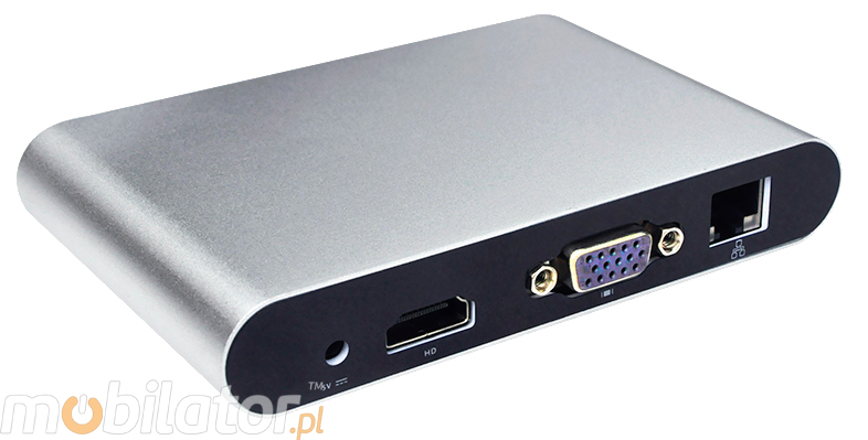 Zintegrowana karta sieciowa Realtek RTL8152B Controller umożliwiają podłączenie urządzenia do sieci. Komputer wyposażony jest w: jedno złącze LAN, dwa porty USB 2.0, jedno wyjście HDMI, jeden wyjście VGA, jeden port microUSB, jeden slot kart TF, jedno wyjście audio.