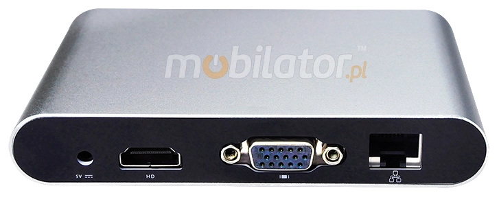 Zintegrowana karta sieciowa Realtek RTL8152B Controller oraz moduł WiFi+BT umożliwiają podłączenie urządzenia do sieci. Komputer wyposażony jest w: jedno złącze LAN, dwa porty USB 2.0, jedno wyjście HDMI, jeden wyjście VGA, jeden port microUSB, jeden slot kart TF, jedno wyjście audio.