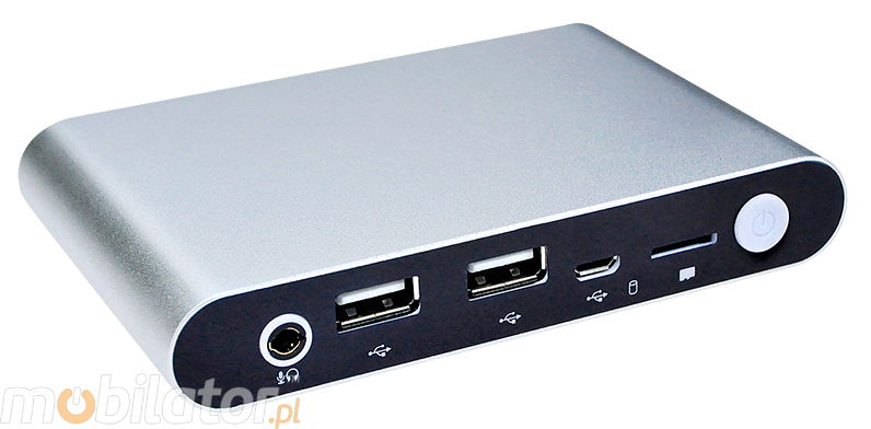 Komputer Przemysłowy Fanless MiniPC mBOX-Q110 Z3735F oparte są na wydajnych cztero-rdzeniowych procesorach oraz wysokiej jakości podzespołach. Mini komputery zamknięte są w niewielkich przemysłowych obudowach, które doskonale odprowadzają ciepło z wnętrz urządzeń. Szeroki wybór modeli mBOX oraz możliwość zmiany konfiguracji, pozwalają na optymalny dobór mini komputera do aplikacji multimedialnych i przemysłowych. Największe zalety tych urządzeń to niewielkie rozmiary, wydajność oraz energooszczędność. Dodatkowa para kątowników przy spodzie obudowy zwiększa możliwości montażu w wszelkiego rodzaju miejscach i pozycjach. Oferowany model mini PC został selektywnie dobrany i skonfigurowany specjalnie do wymagań systemów Digital Signage, automatów do gier, automatów rozrywkowych, kiosków informacyjnych oraz systemów automatyki przemysłowej.