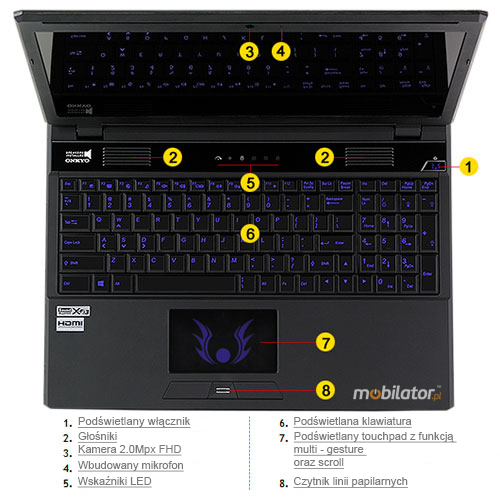 Pod¶wietlenie klawiatury oraz touchpada diodami LED to funkcja, która nie tylko upiêksza Clevo P157SM, ale równie¿ u³atwia pisanie, kiedy ¶wiat³o w otoczeniu jest s³abe. Kolor i intensywno¶æ illuminacji mo¿na dostosowaæ do swoich potrzeb. Pod¶wietlenie trójstrefowe co pozwala na pod¶wietlenie klawiatury w miejscach, z których korzystasz, a wy³±czenie go tam, gdzie jest ono niepotrzebne np. pod klawiatur± numeryczn±.
