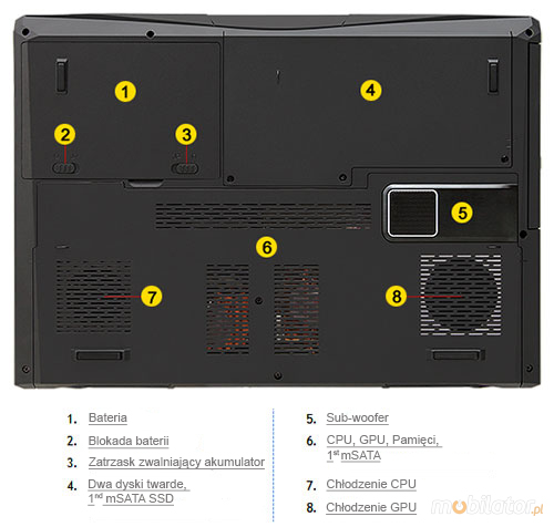 Firma CLEVO wychodz±c naprzeciw potrzebom u¿ytkowników zastosowa³o w laptopie P157SM ³atwy dostêp do podzespo³ów komputera. Dziêki temu bez ¿adnych problemów wymienisz dysk na wiêkszy, podniesiesz wydajno¶æ ko¶ci RAM lub po prostu wyczy¶cisz laptopa z zalegaj±cego kurzu.