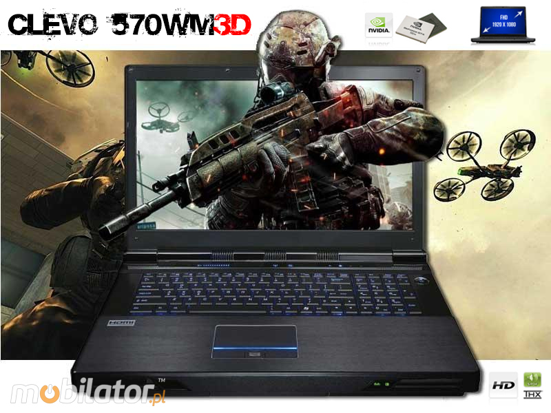 Wypróbuj nowego laptopa CLEVO P570EM3 , by uzyskać wolny od smużenia obraz 3D w pełnej rozdzielczości HD (Full HD). P570EM3 posiada zintegrowane wsparcie dla technologii NVIDIA 3D VISION2. Doświadcz jeszcze intensywniejszych wrażeń płynących z gry dzięki większym o 20% szkłom 3D zapewniającym najszersze pole widzenia. Graj w ponad 600 gier 3D na PC włączając w to najnowsze tytuły, takie jak: Batman: Arkham City, Crysis 2 i L.A. Noire.