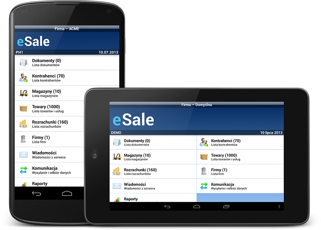 eSale to kompleksowy system wspomagania sprzedaży mobilnej. Uzupełnia lukę pomiędzy klasycznymi programami komputerowymi a klientem. System eSale umożliwia lepszy i szybszy kontakt z klientami i jest przeznaczony dla pracowników mobilnych, wyposażonych w smartfon lub tablet. System eSale stworzony przez firmę MAYER S.C. jest jednym z pierwszych na rynku mobilnym rozwiązaniem wspomagającym pracę przedstawicieli handlowych, współpracującym z urządzeniami działającymi na platformie Android™. Charakteryzuje się zdecydowanie lepszą wydajnością oraz nowym, przyjaznym i intuicyjnym interfejsem.