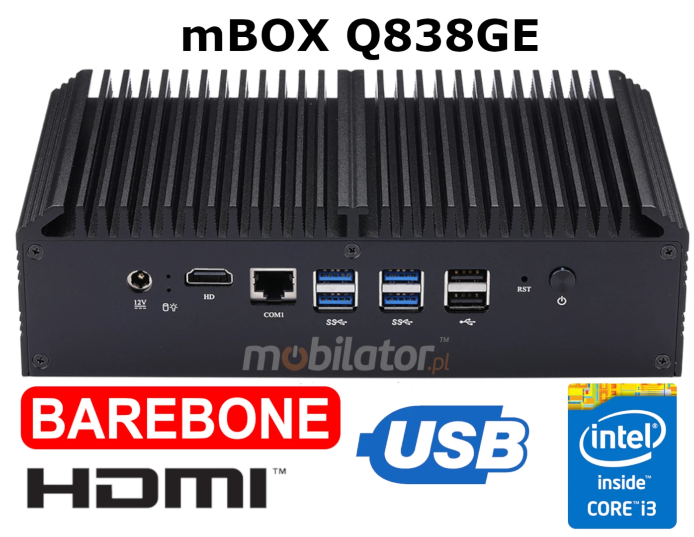 Niewielkich wymiarów komputery przemysłowe przodują w środowiskach, w których dominują kurz, brud i wilgoć. Są idealne do zastosowań wymagających cichej pracy. Małe i niezawodne MiniPC korzystają z technologii heat-pipe i lamel z aluminium dla pasywnego chłodzenia. Wytrzymały mini Komputer Przemysłowy mBOX Q838GE to urządzenie przeznaczone do wszelkich zastosowań przemysłowych i nie tylko, wymagających ciągłej pracy - 24 godziny, 7 dni w tygodniu.
