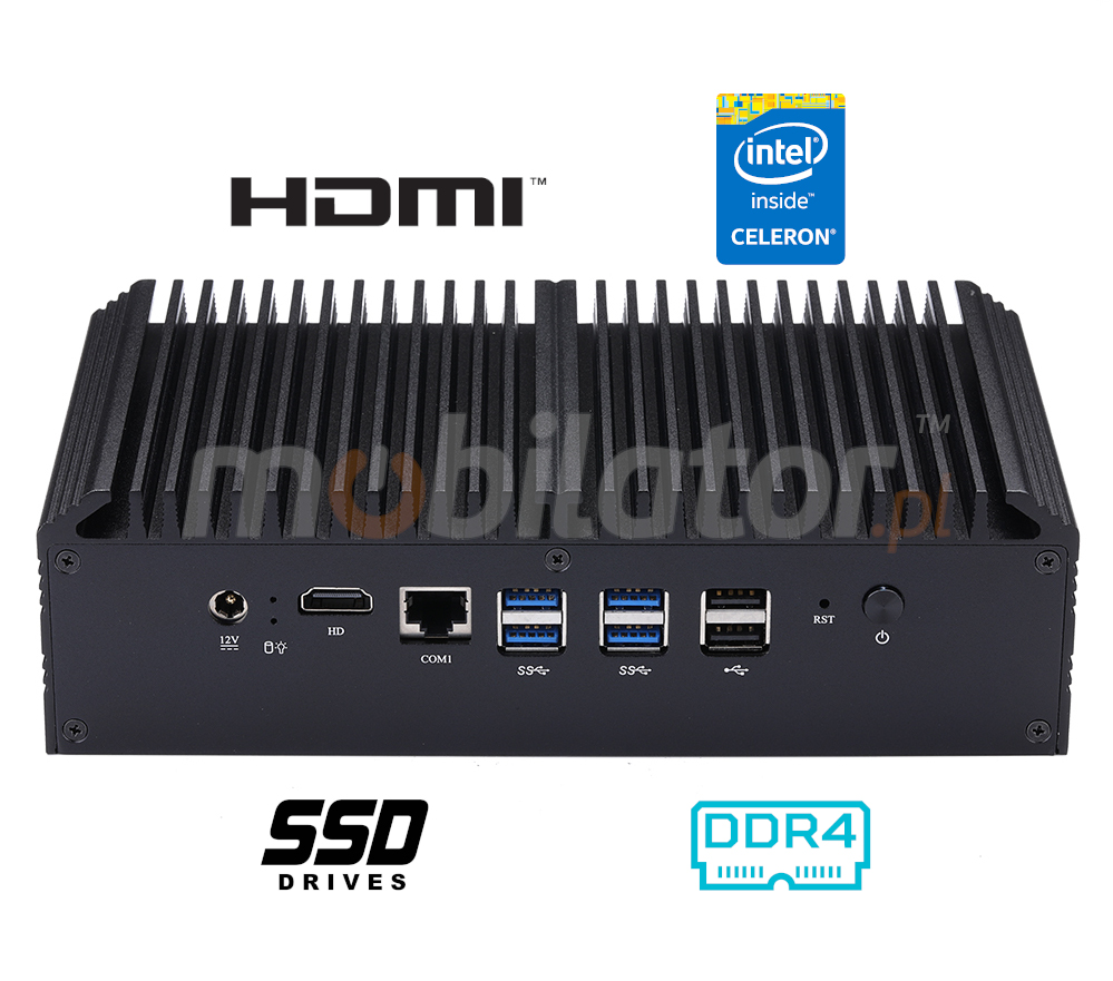 W przemysłowym mini komputerze mBOX Q817GEX zastosowano wydajny i energooszczędny procesor Intel Celeron 3865U. W jego wnętrzu znajdują się cztery współdziałające rdzenie umożliwiające bardziej efektywne przetwarzanie wielu zadań jednocześnie. Współużytkowana pamięć cache, w której wykorzystano wielopoziomową hierarchię, jest dynamicznie przydzielana dla każdego rdzenia procesora w zależności od obciążenia. Doprowadza to do zmniejszenia średniego czasu dostępu do pamięci głównej. Zaimplementowana technologia wirtualizacji Intel® (VT-x) sprawia, że jedna platforma sprzętowa działa jak wiele „wirtualnych" platform. Zapewnia większe możliwości zarządzania dzięki ograniczeniu przestojów i utrzymywaniu wysokiej wydajności przez podział procesów obliczeniowych na odrębne partycje.
