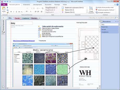 W programie OneNote 2010 można utworzyć notes, aby organizować zasoby na potrzeby dowolnego projektu, począwszy od remontu mieszkania, aż po decyzje dotyczące istotnych zakupów.