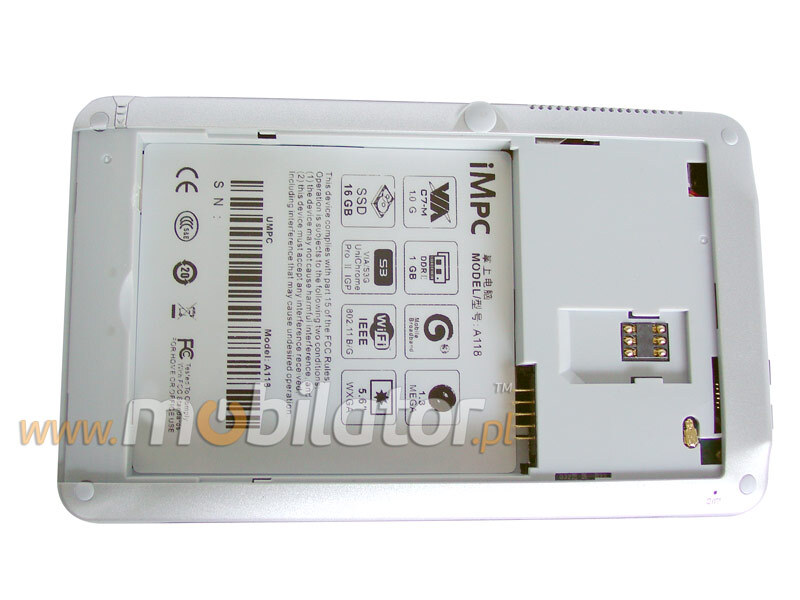iMPC A118 MID wyposażony jest w systemy łączności przewodowej LAN oraz bezprzewodowej WiFi (802.11 b/g).