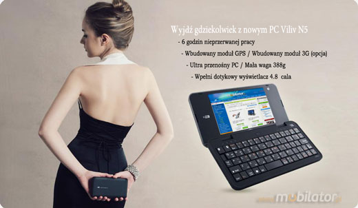Firma Viliv wypu¶ci³a na rynek urz±dzenie o nazwie N5, które jest netbookiem o rozmiarach 172(W) x 86(L) x 25(H)mm nieco wiêkszych od przeciêtnych smartfonów. Nowy gad¿et jest kierowany do osób, które potrzebuj± mobilnego dostêpu do komputera i Internetu.