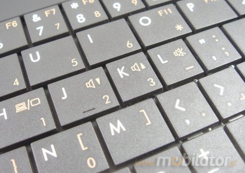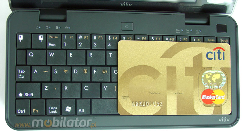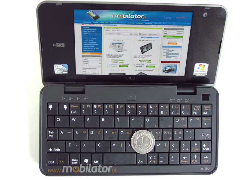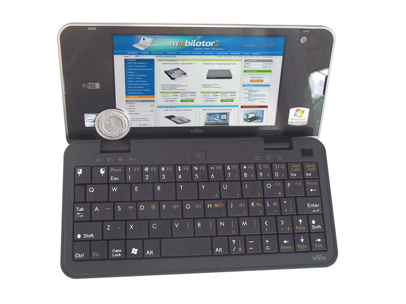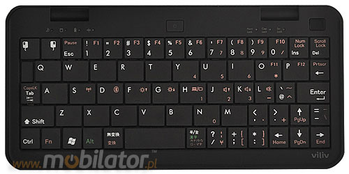 Odpowiednio dobrana i bardzo dobrze skonstruowana klawiatura QWERTY pozwala na wygodne i szybkie wprowadzanie tekstu podczas edycji dokumentów oraz umo¿liwia sprawn± nawigacjê we wszystkich programach, zainstalowanych na Viliv-ie. Dodatkowy klawisz "Fn" daje nam mo¿liwo¶æ dostêpu do kilkunastu funkcji (przyk³adowo zmiany jasno¶ci wy¶wietlanego obrazu czy wprowadzenia Viliv-a w stan hibernacji).