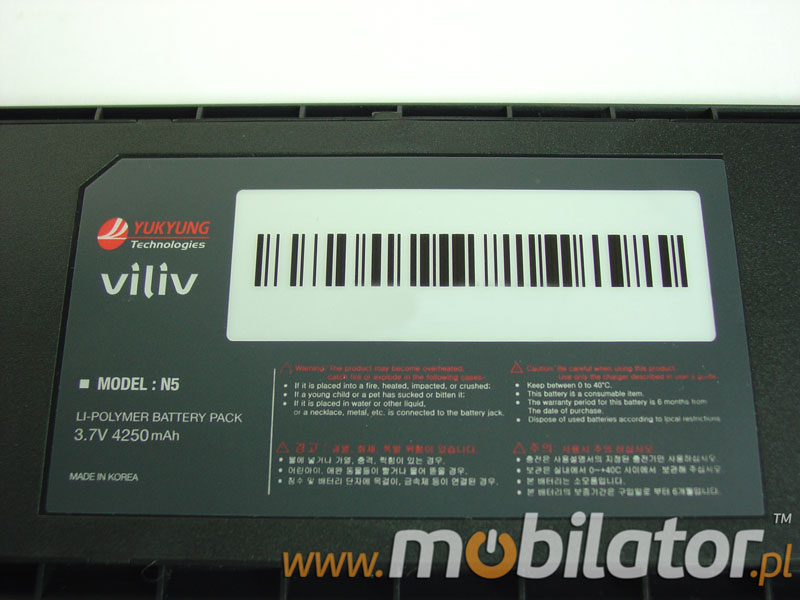 N5 ma niewiarygodnie wydajn± bateriê wykonan± z najlepszych dostêpnych ogniw. Viliv mo¿e pracowaæ nieprzerwanie a¿ do 6 godzin z czego przez 4 godziny mo¿emy ogl±daæ filmy video. Czas pozostania w u¶pieniu to a¿ 150 godzin, w trakcie których mo¿esz przenie¶æ swojego Viliv-a w kieszeni czy torebce na spotkanie lub lunch, a w drodze powrotnej do domu obejrzeæ swój ulubiony film.