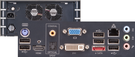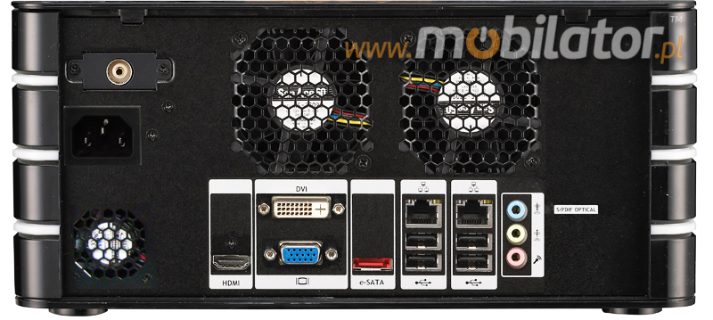 6 x USB 2.0, LAN RJ45 (10/100/1G LAN), 1 x VGA, 1 x DVI, 1 x HDMI, 1 x eSATA, 1 x PS2 (Klawiatura), Audio SPDIF - COAXIAL, OPTICAL
