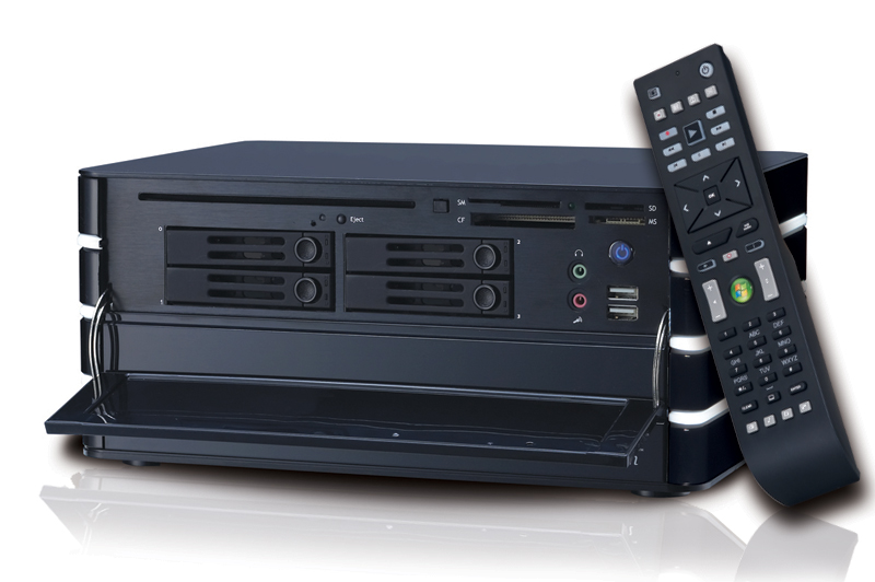 Panel przedni, pod pokryw± mie¶ci najpotrzebniejsze w codziennym u¿ytkowaniu elementy takie jak napêd CD/DVD/Blue-Ray, czytnik popularnych formatów kart flash, dodatkowe z³±cza audio i USB oraz 4 kieszenie na dysk 2,5" z funkcj± HotSwap, która umo¿liwia swobodn± wymianê no¶ników bez potrzeby wy³±czania urz±dzenia.