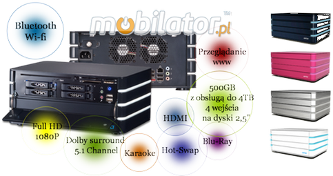 2 x USB 2.0, S³uchawki, Mikrofon, Czytnik kart SD, MS, SM, CF, 4 wej¶cia na dyski 2,5"