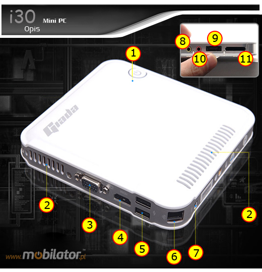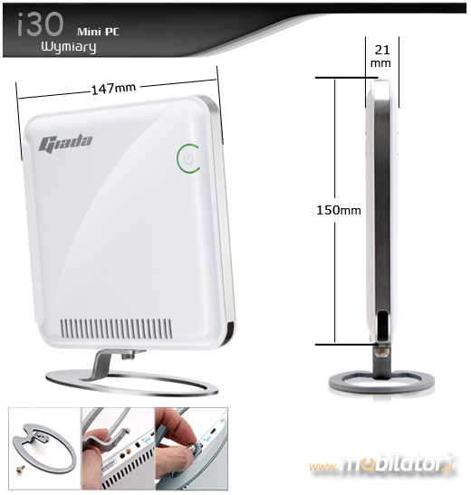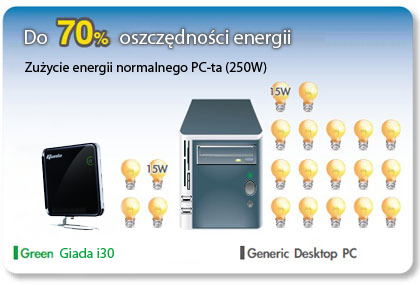 Mini PC Giada wspomagany jest procesorem Intel Atom dziêki czemu jest niebywale energooszczêdny, zachowuj±c przy tym du¿± wydajno¶æ pracy, czego dowodem jest system Windows Vista czy 7 który dedykowany jest dla tego urz±dzenia.