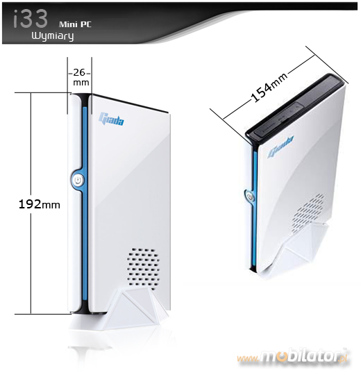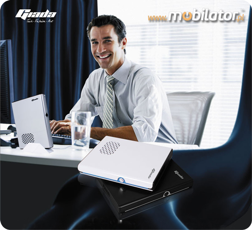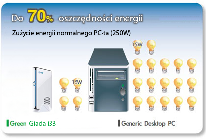 Mini PC Giada wspomagany jest procesorem Intel Atom, dziêki czemu jest niebywale energooszczêdny, zachowuj±c przy tym du¿± wydajno¶æ pracy, czego dowodem jest system Windows Vista czy 7 który dedykowany jest dla tego urz±dzenia.