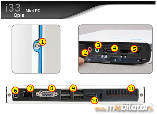 Nowoczesny wygl±d i33 inspirowany jest gracj± i stylem baleriny. Elegancka, oszczêdzaj±ca przestrzeñ forma czyni z niego najmniejszy na ¶wiecie komputer PC. Wielkie rzeczy znajduj± siê w ma³ych opakowaniach, i33 nie jest tu wyj±tkiem z ca³ym zestawem portów wej¶cia i wyj¶cia zapewniaj±cym pe³n± ³±czno¶æ.