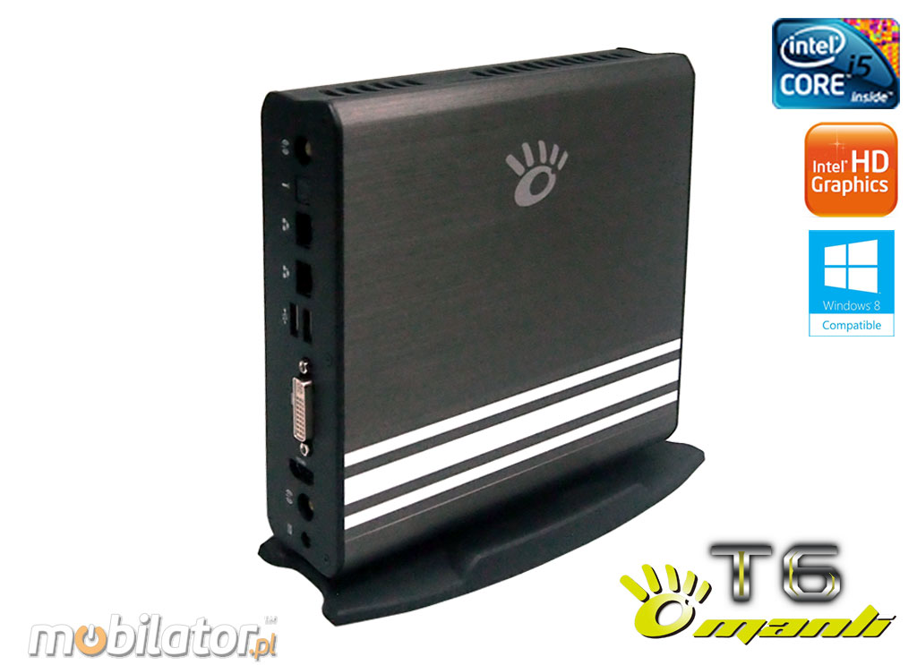 Mini-PC Manli wspomagany jest procesorem Intel® Core™ i5-3470T, dziêki czemu jest niebywale energooszczêdny (35W), zachowuj±c przy tym du¿± wydajno¶æ pracy, czego dowodem jest system Windows 7 lub 8, który dedykowany jest dla tego urz±dzenia. Intel® Core™ i5-3470T jest to dwurdzeniowy procesor o czêstotliwo¶ci (2x2.9GHz) dla ma³ych netbooków oraz MiniPC. Oferuje potê¿n± zintegrowan± kartê graficzn± Intel® HD 2500 i dwa kana³y pamiêci DDR3-1600MHz.