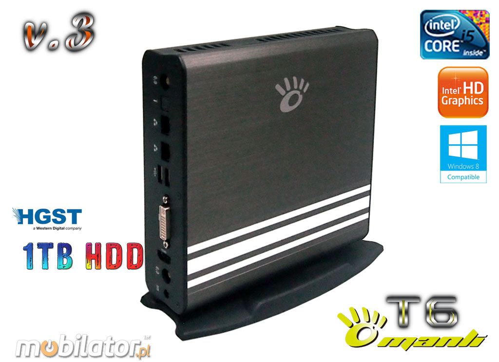 Mini-PC Manli wspomagany jest procesorem Intel® Core™ i5-3470T, dziêki czemu jest niebywale energooszczêdny (35W), zachowuj±c przy tym du¿± wydajno¶æ pracy, czego dowodem jest system Windows 7 lub 8, który dedykowany jest dla tego urz±dzenia. Intel® Core™ i5-3470T jest to dwurdzeniowy procesor o czêstotliwo¶ci (2x2.9GHz) dla ma³ych netbooków oraz MiniPC. Oferuje potê¿n± zintegrowan± kartê graficzn± Intel® HD 2500 i dwa kana³y pamiêci DDR3-1600MHz.