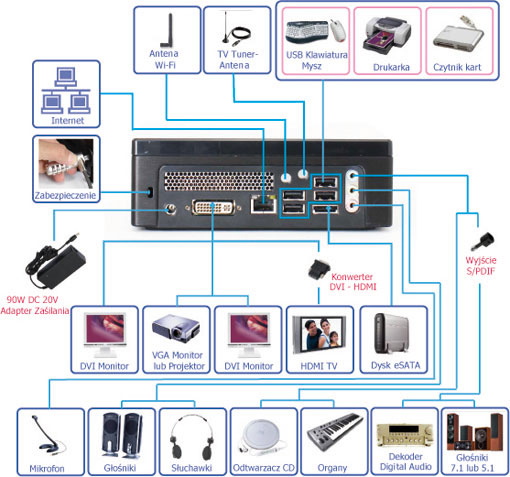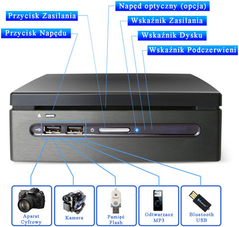 Dziêki zastosowaniu energooszczêdnych technologii MiniPC zu¿ywa o wiele mniej energii elektrycznej, a jego kultura pracy wielokrotnie przebija standardowy komputer stacjonarny.