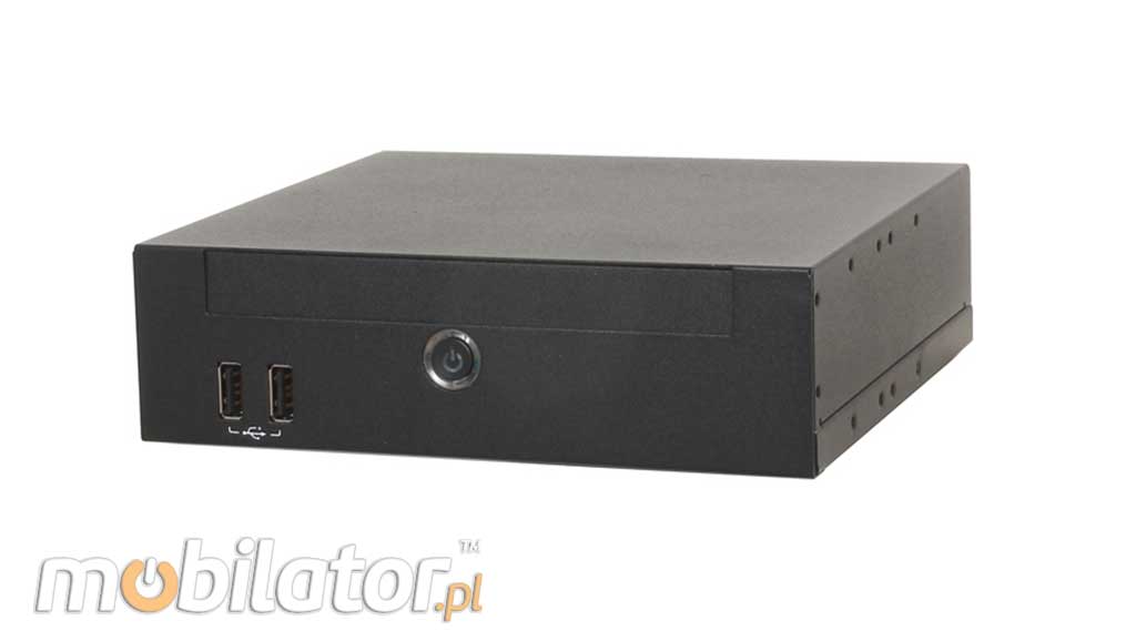 Zintegrowana karta sieciowa 10/100 Ethernet lub karta WiFi (opcja) umożliwia podłączenie urządzenia do sieci. Komputer wyposażony jest w: jedno złącze HDMI, jeden port COM(RS232), wyjście DVI-I, cztery porty USB (2xUSB 2.0/ 2xUSB 3.0) oraz opcjonalnie w tuner telewizyjny i czytnik kart CF.