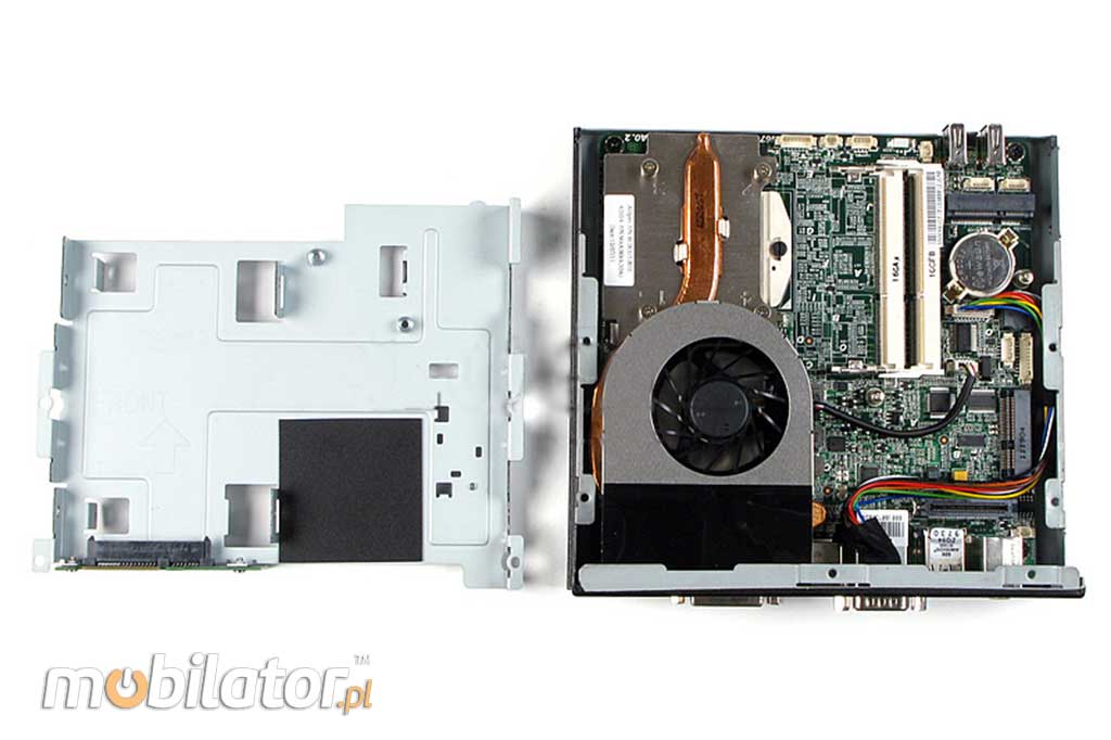 Zintegrowana karta sieciowa 10/100 Ethernet lub karta WiFi (opcja) umożliwia podłączenie urządzenia do sieci. Komputer wyposażony jest w: jedno złącze HDMI, jeden port COM(RS232), wyjście DVI-I, cztery porty USB (2xUSB 2.0/ 2xUSB 3.0) oraz opcjonalnie w tuner telewizyjny i czytnik kart CF.