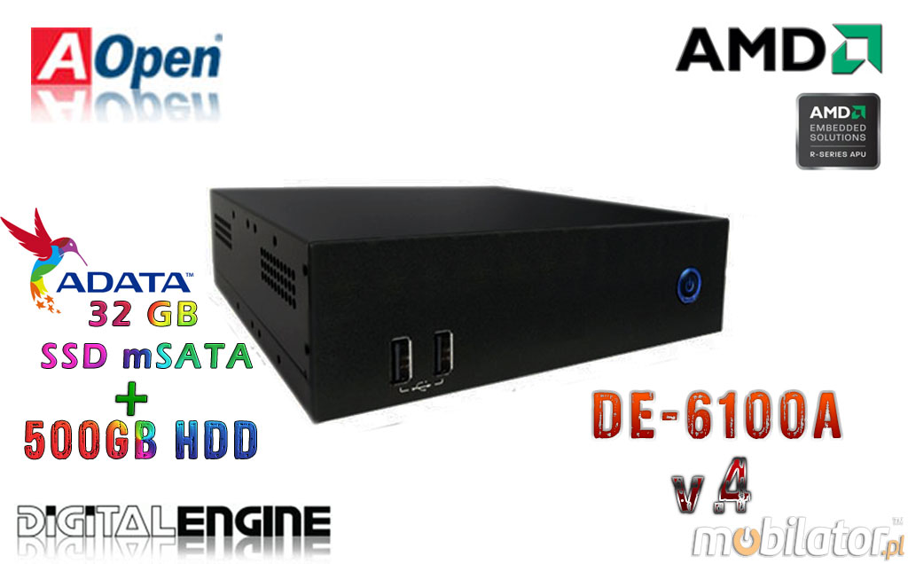 MiniPC Przemysłowy AOpen DE6100 A AMD Dual Core R-272F 2x2.7GHz 16GB DDR3 256GB SSD SATA 3